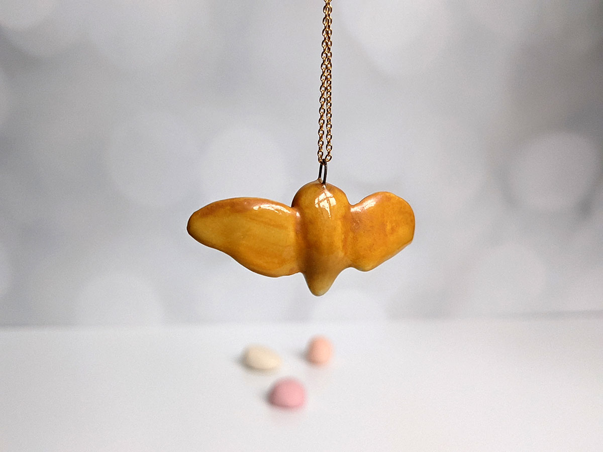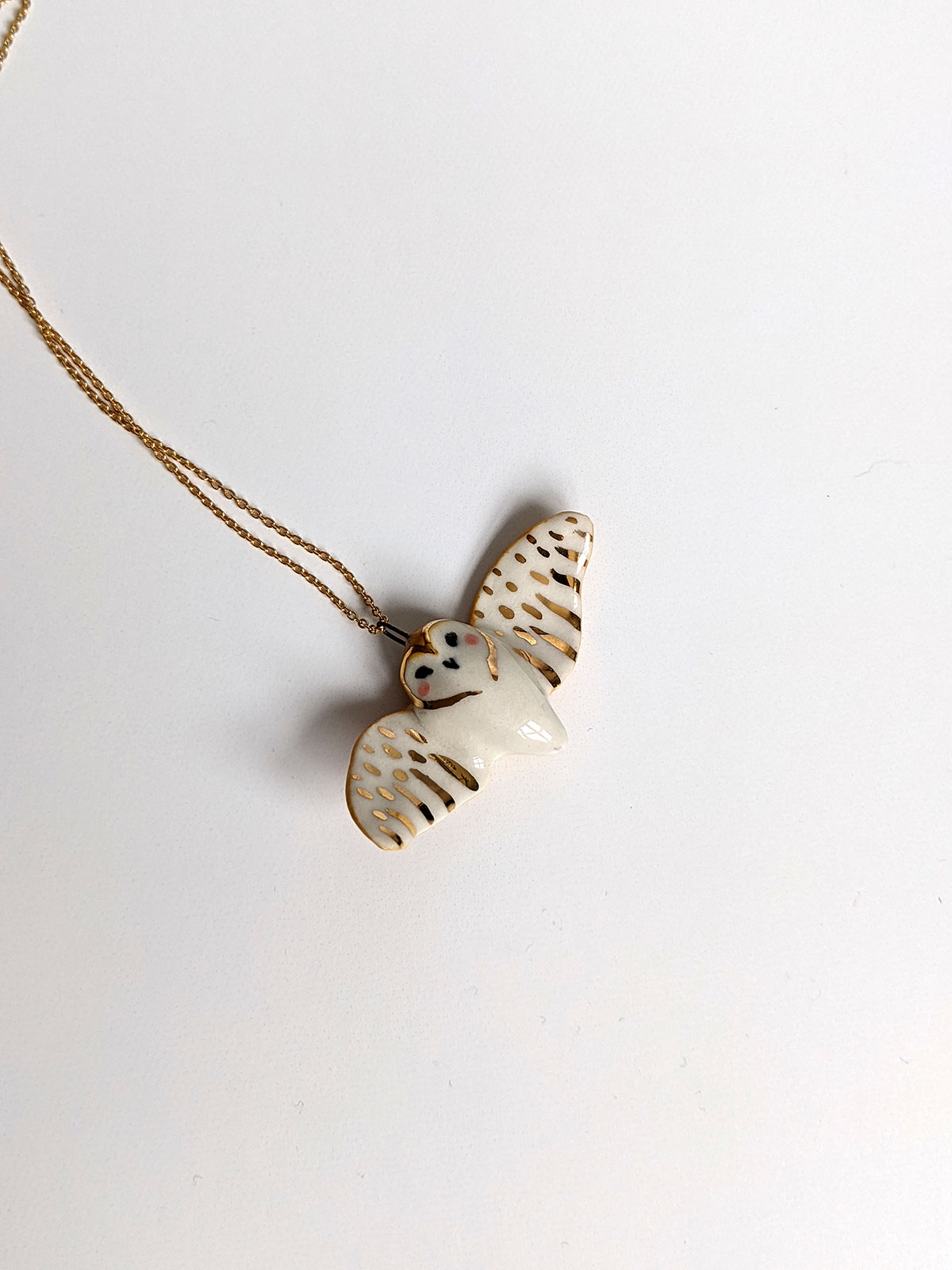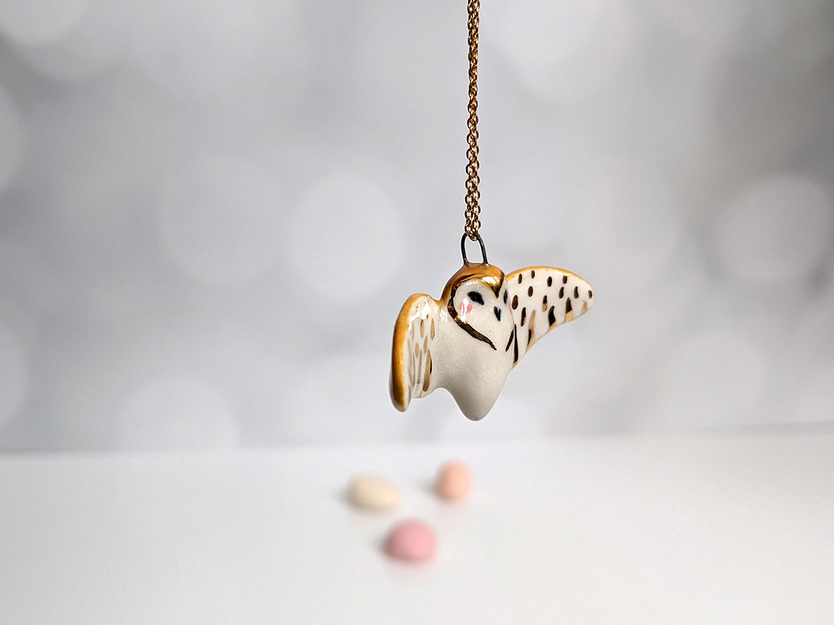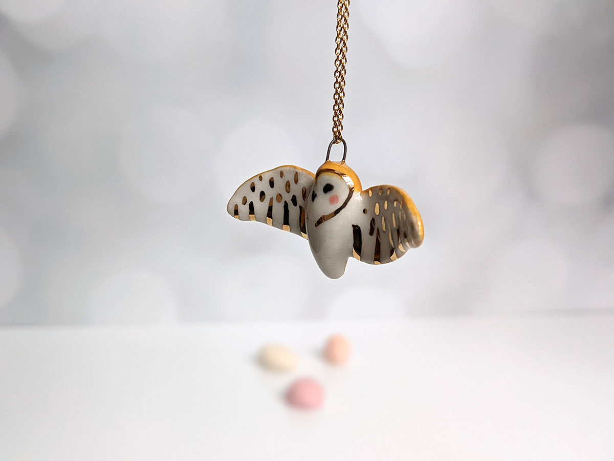Barn Owl pendant – Ceramics + Gold – Wings