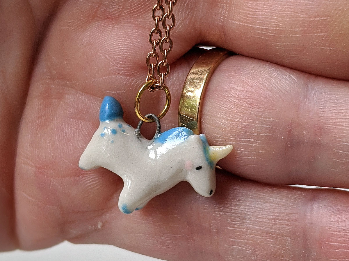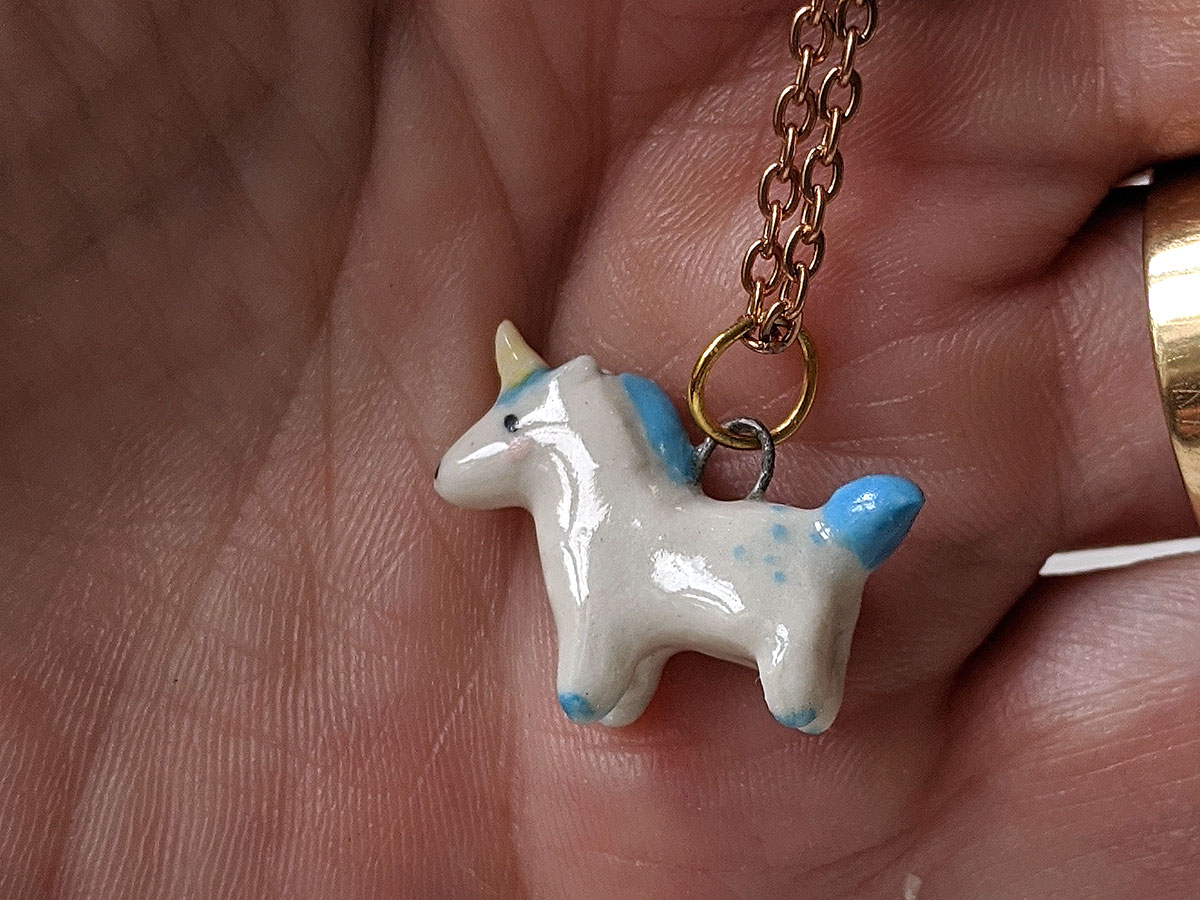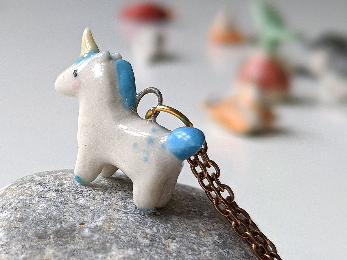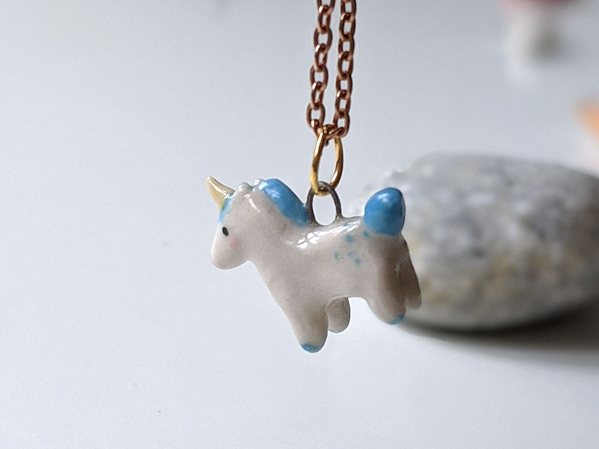 Small Blue Unicorn pendant, one of a kind, handcrafted in Québec. Chain is not included.