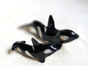 Mini boucles d’oreilles montées sur des studs hypoallergéniques en acier chirurgical couleur or. Chaque béluga est différent. Fait à la main à Montréal, ils viennent dans une petite boîte personnalisée.