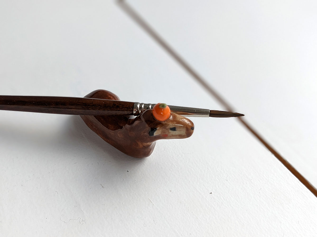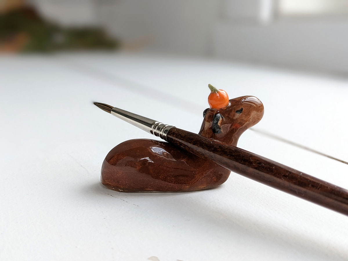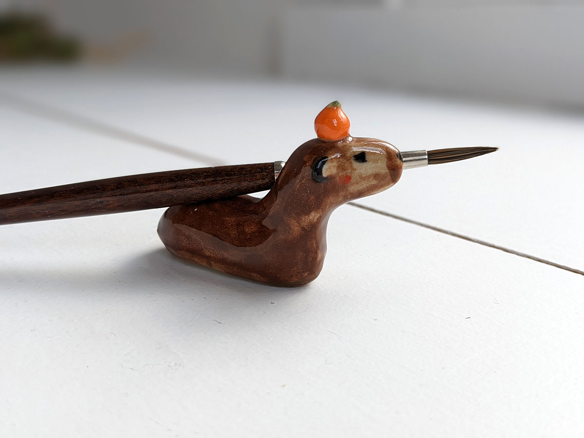 One of a kind ceramics figurine that can be used as a brush or pen, tablet stylus holder.