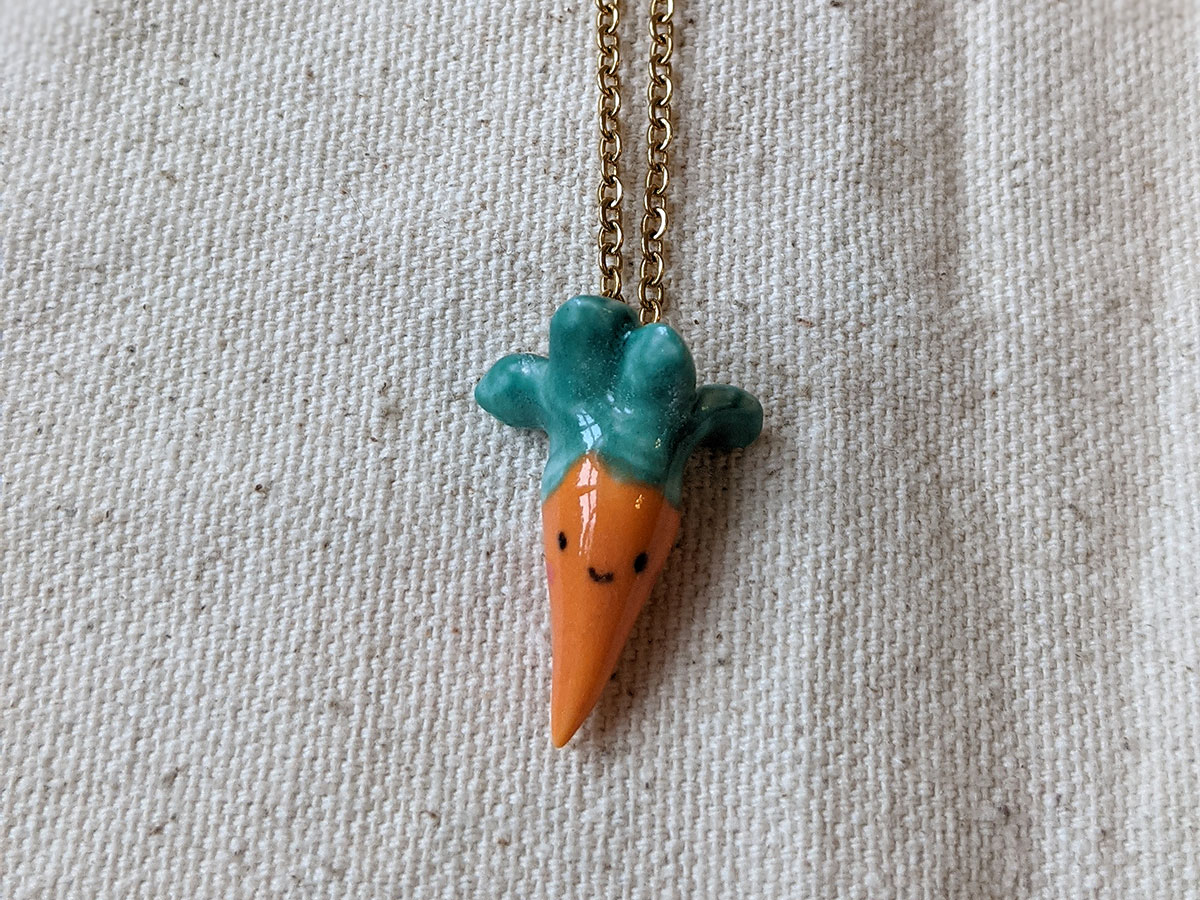 Small Carrot pendant. Porcelain one of a kind piece. Chain sold separately.