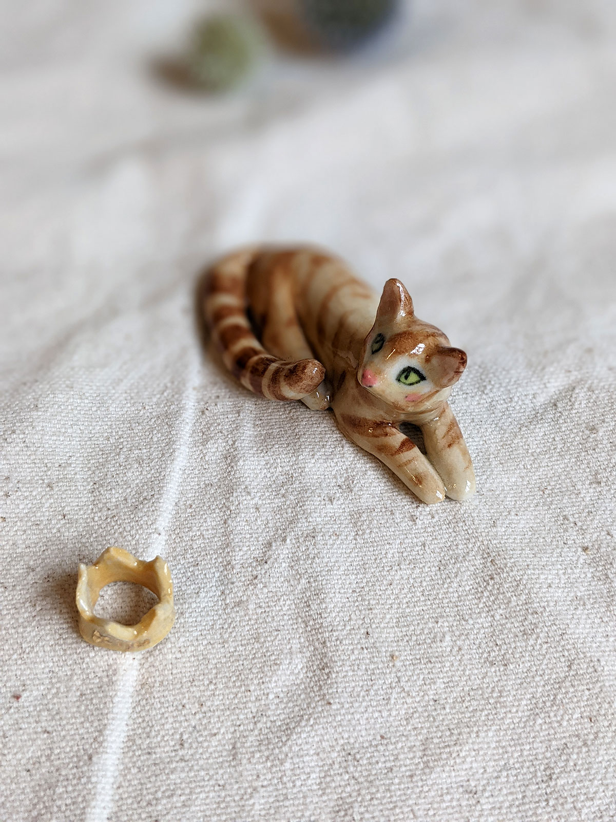 Cat and crown figurine
