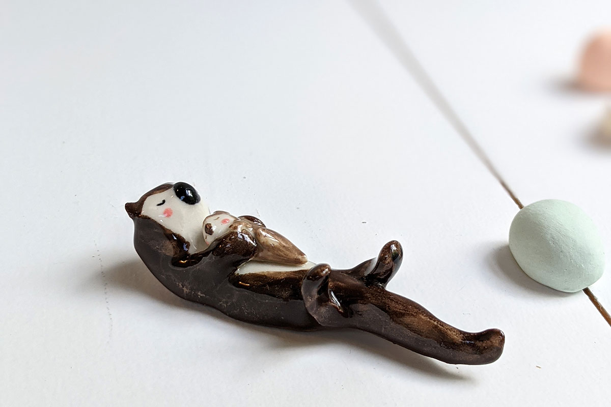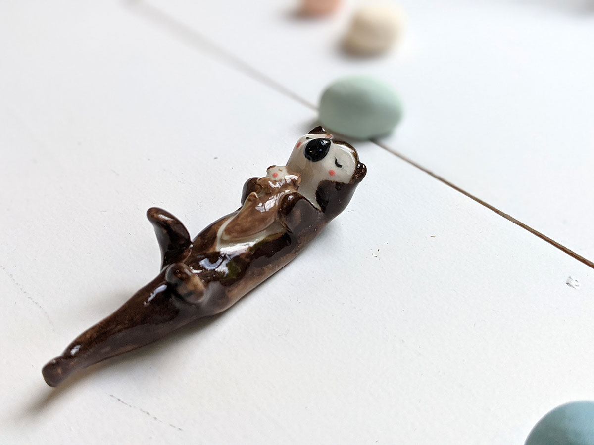 Ceramic Otter Mom and Pup