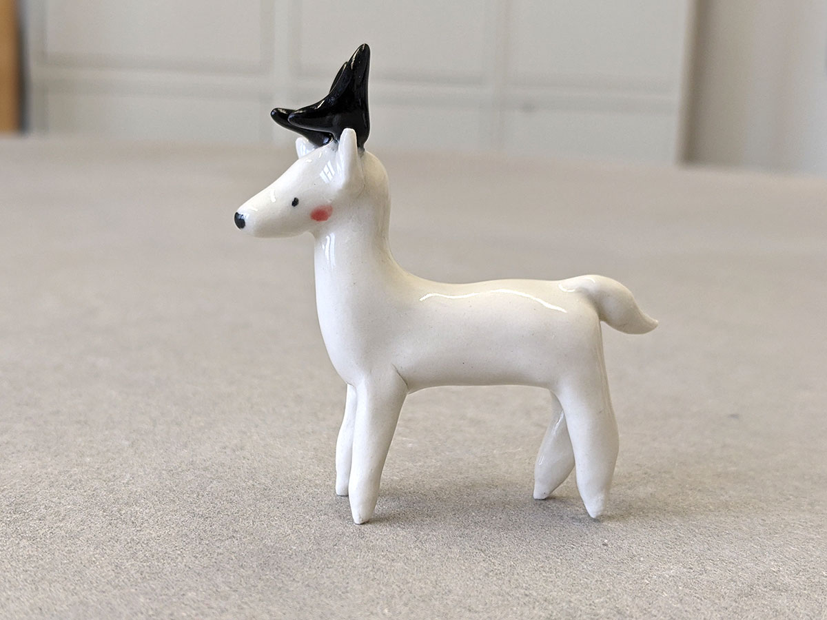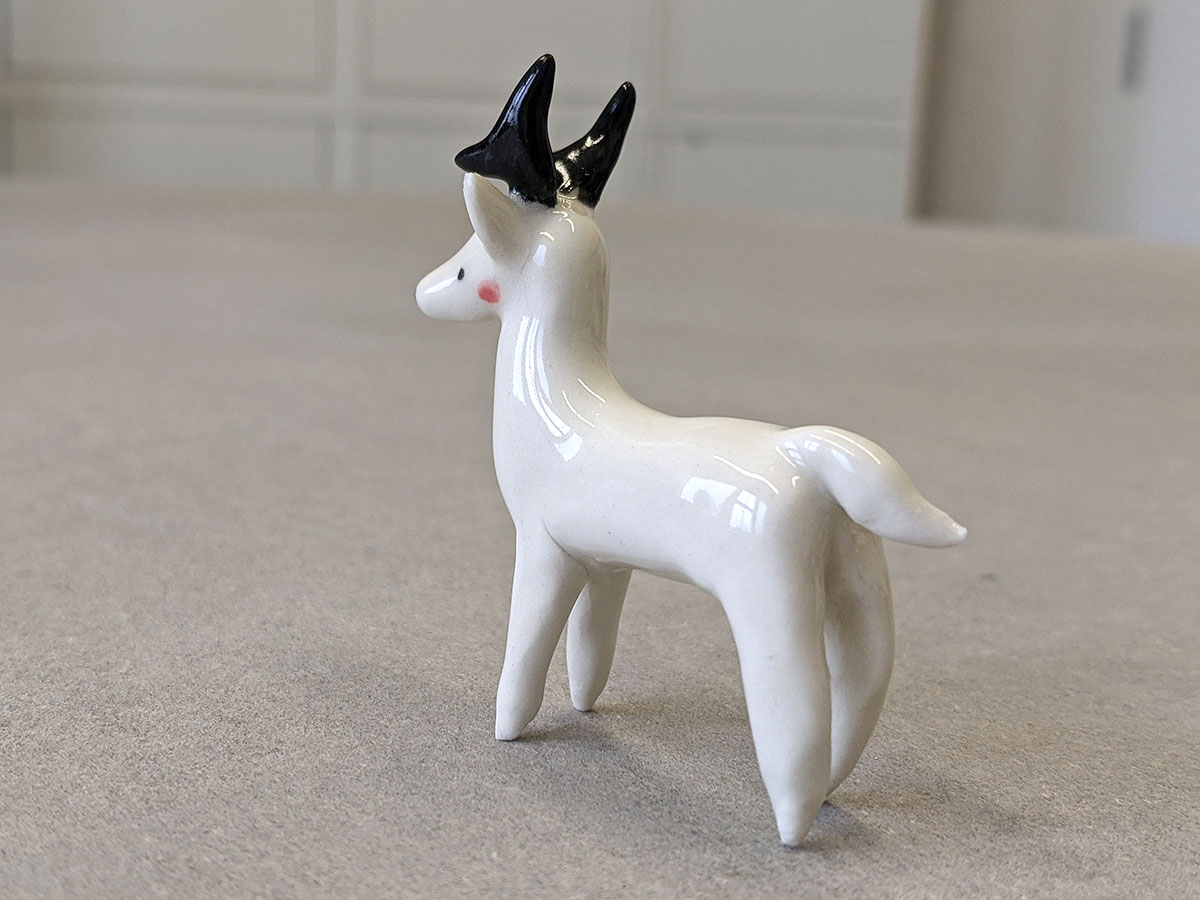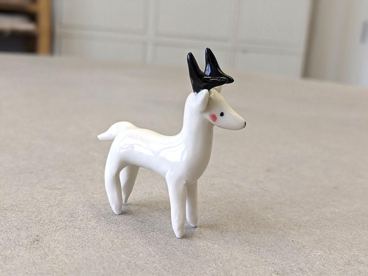 Small ceramics Elk miniature. White with black horns. About 7 cm long / high.