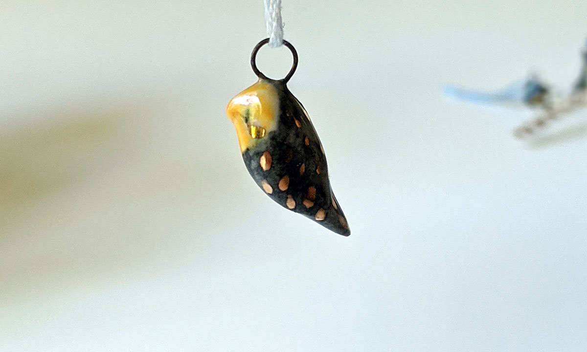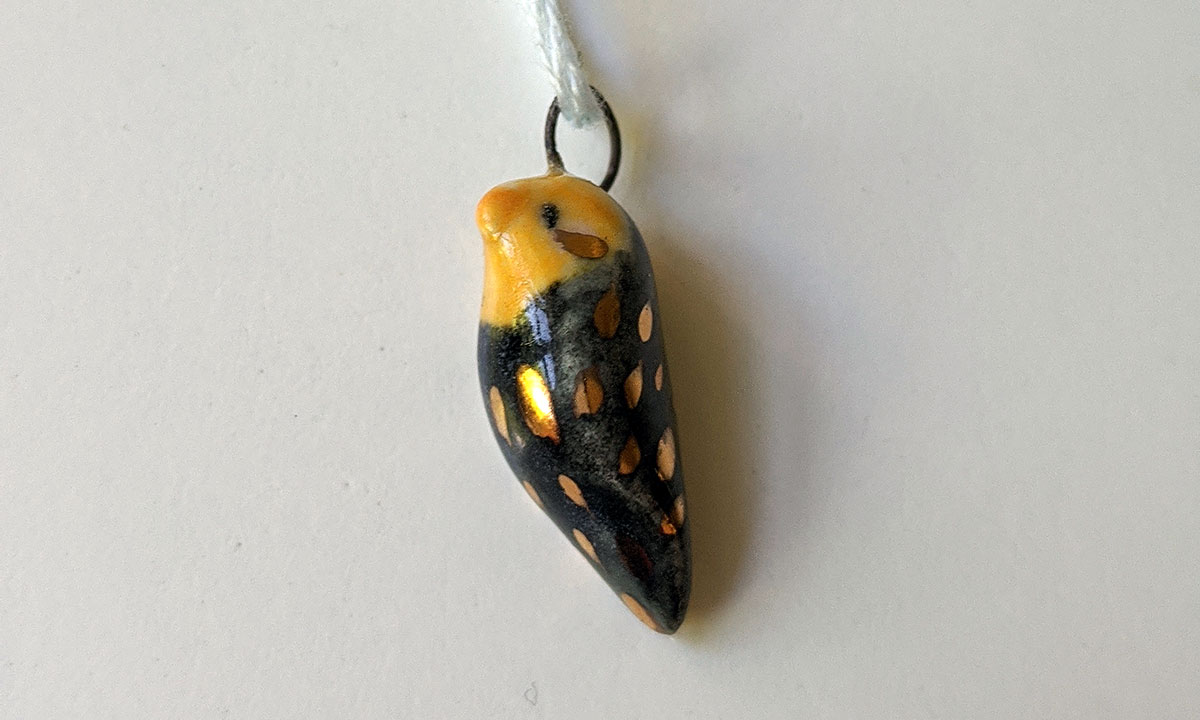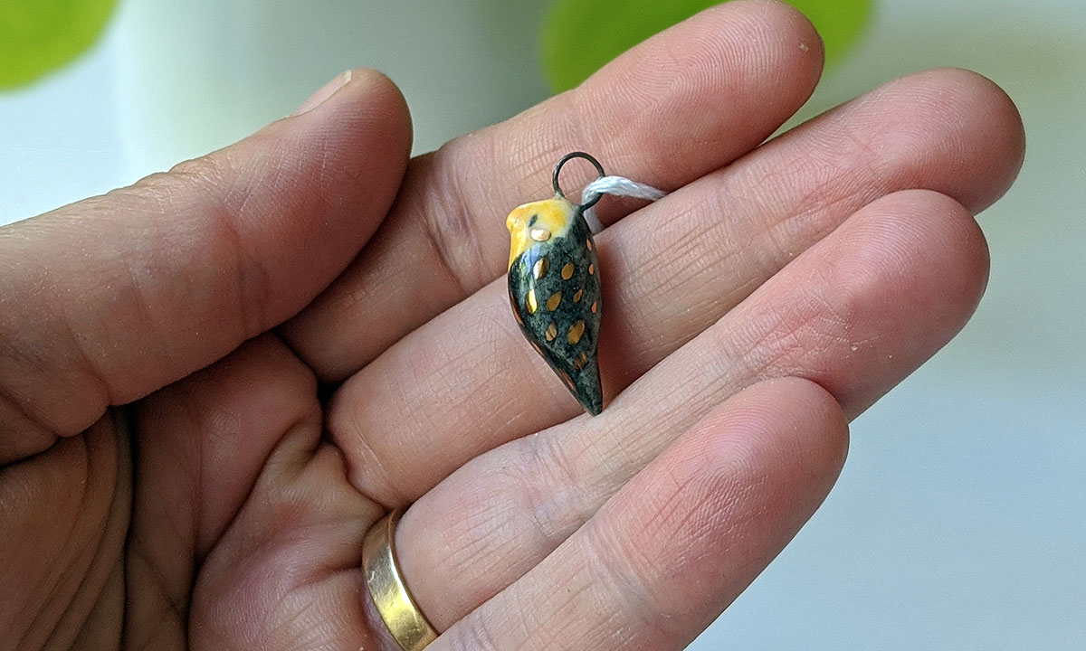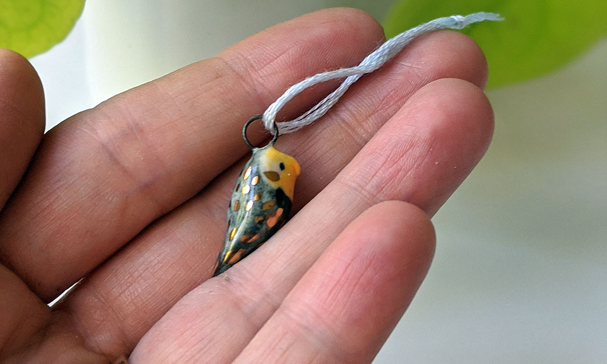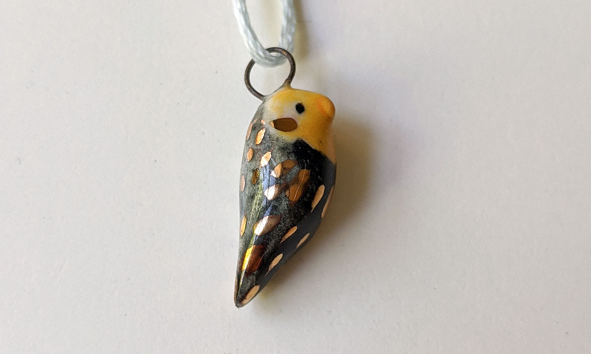One of a kind ceramics and gold cockatiel pendant for bird parents or bird fans. This unique piece of porcelain jewelry is 100% handmade and sent in a custom box. Regular shipping fees are included.