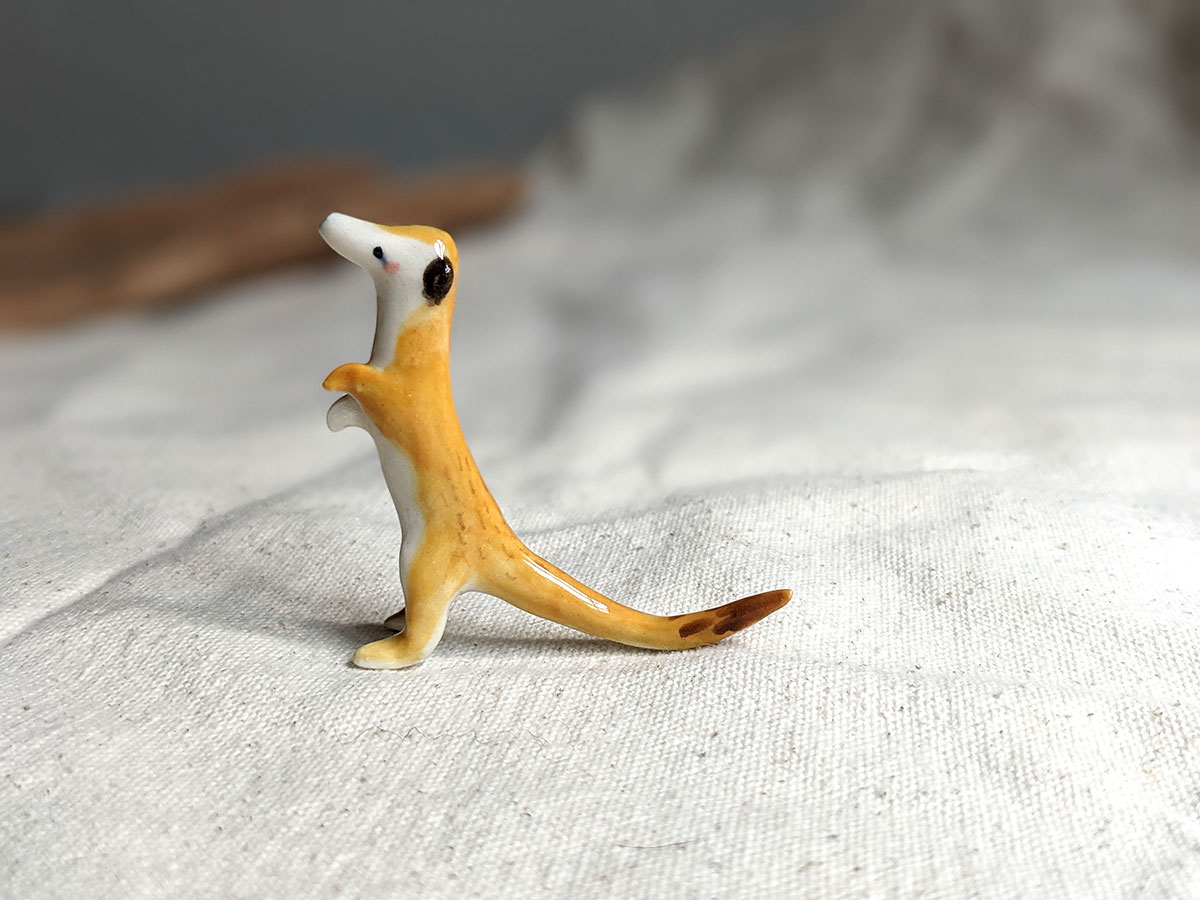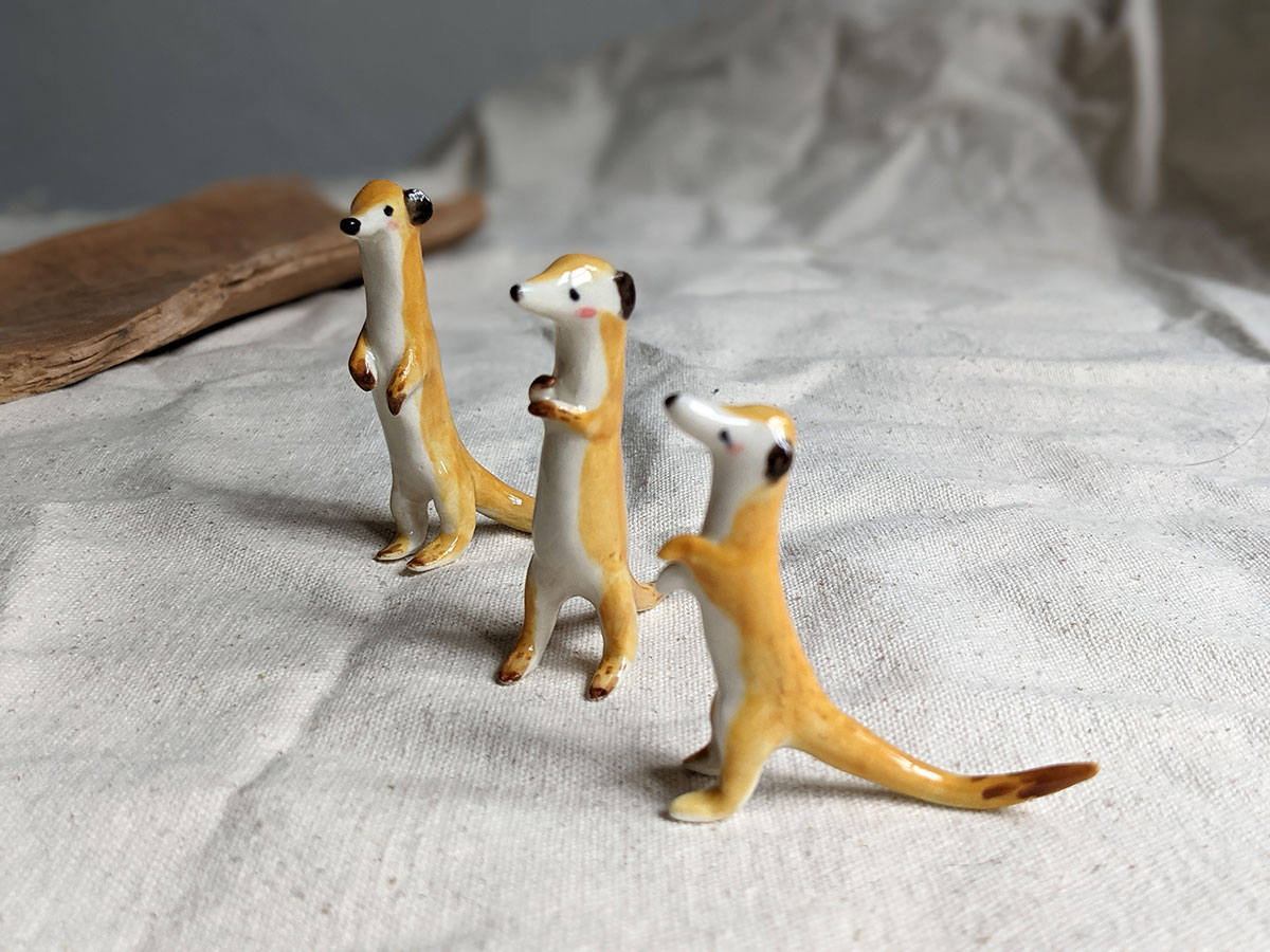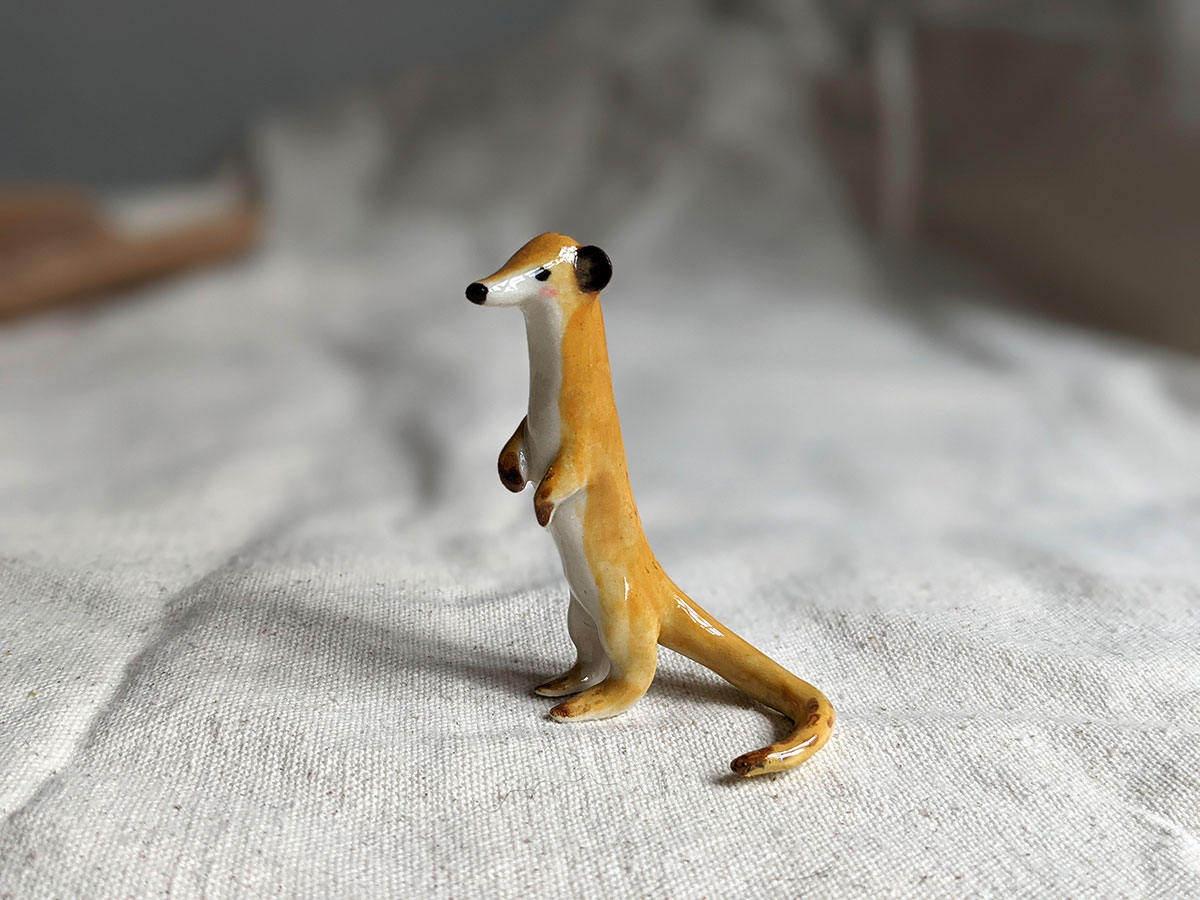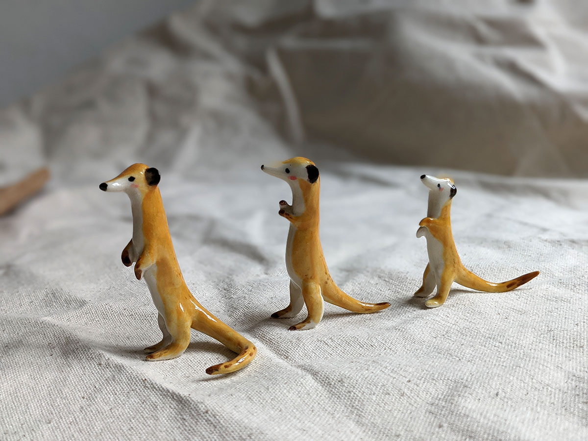 Little meerkat porcelain figurine in a sentinel pose. About 5/6 cm high, several models to chose from. One of a kind ceramics miniature, handcrafted in Montréal.