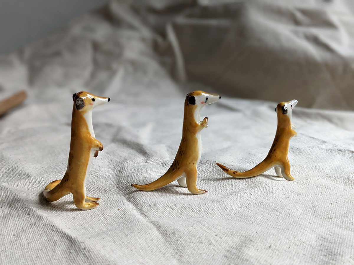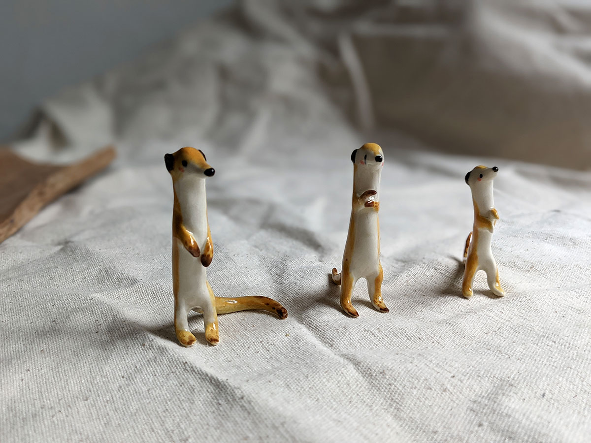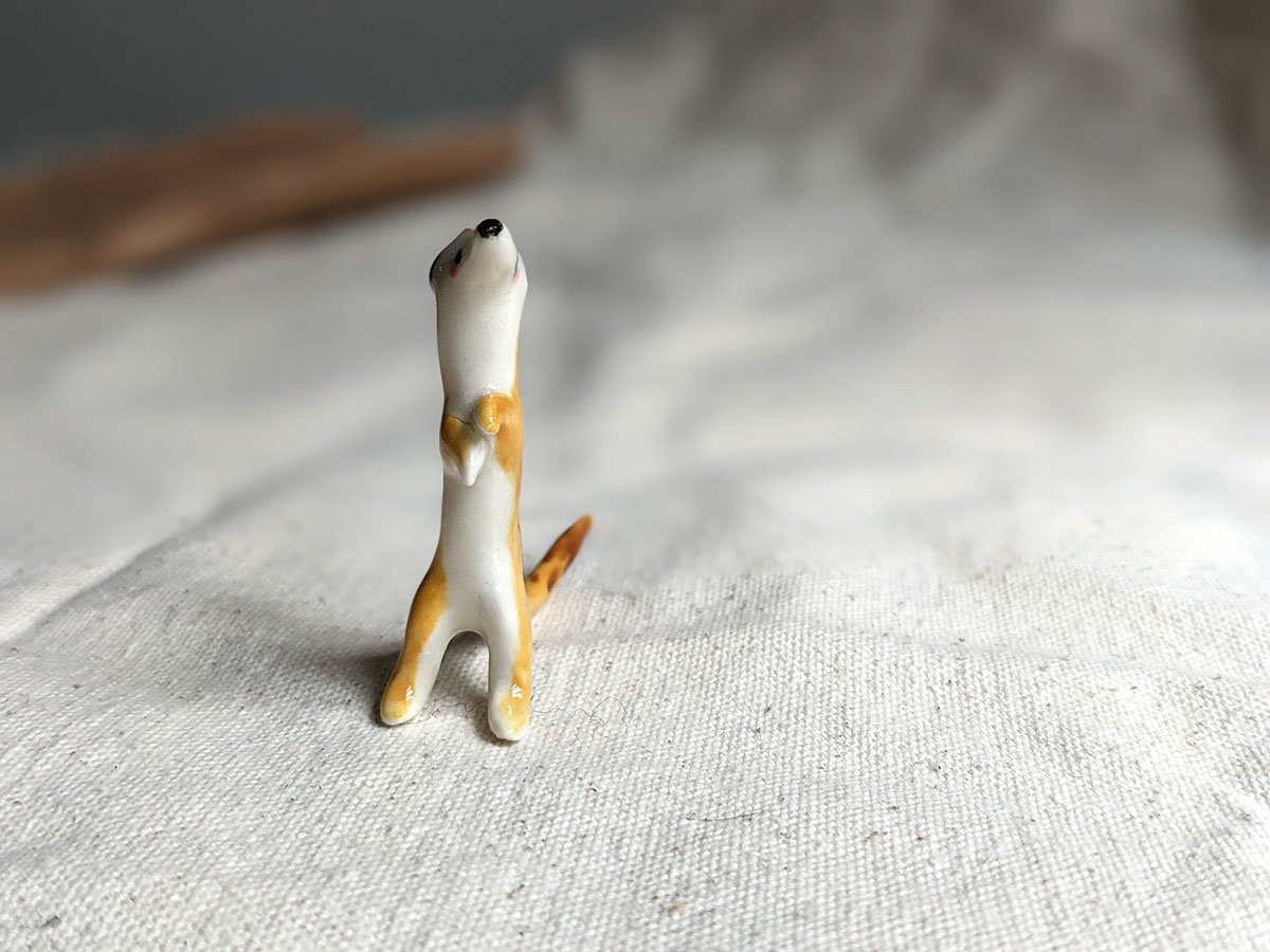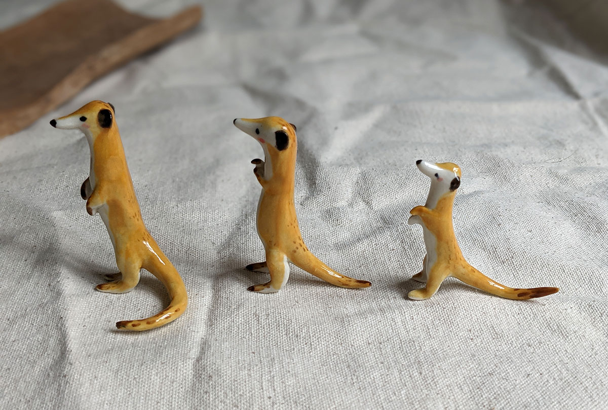 Little meerkat porcelain figurine in a sentinel pose. About 5/6 cm high, several models to chose from. One of a kind ceramics miniature, handcrafted in Montréal.