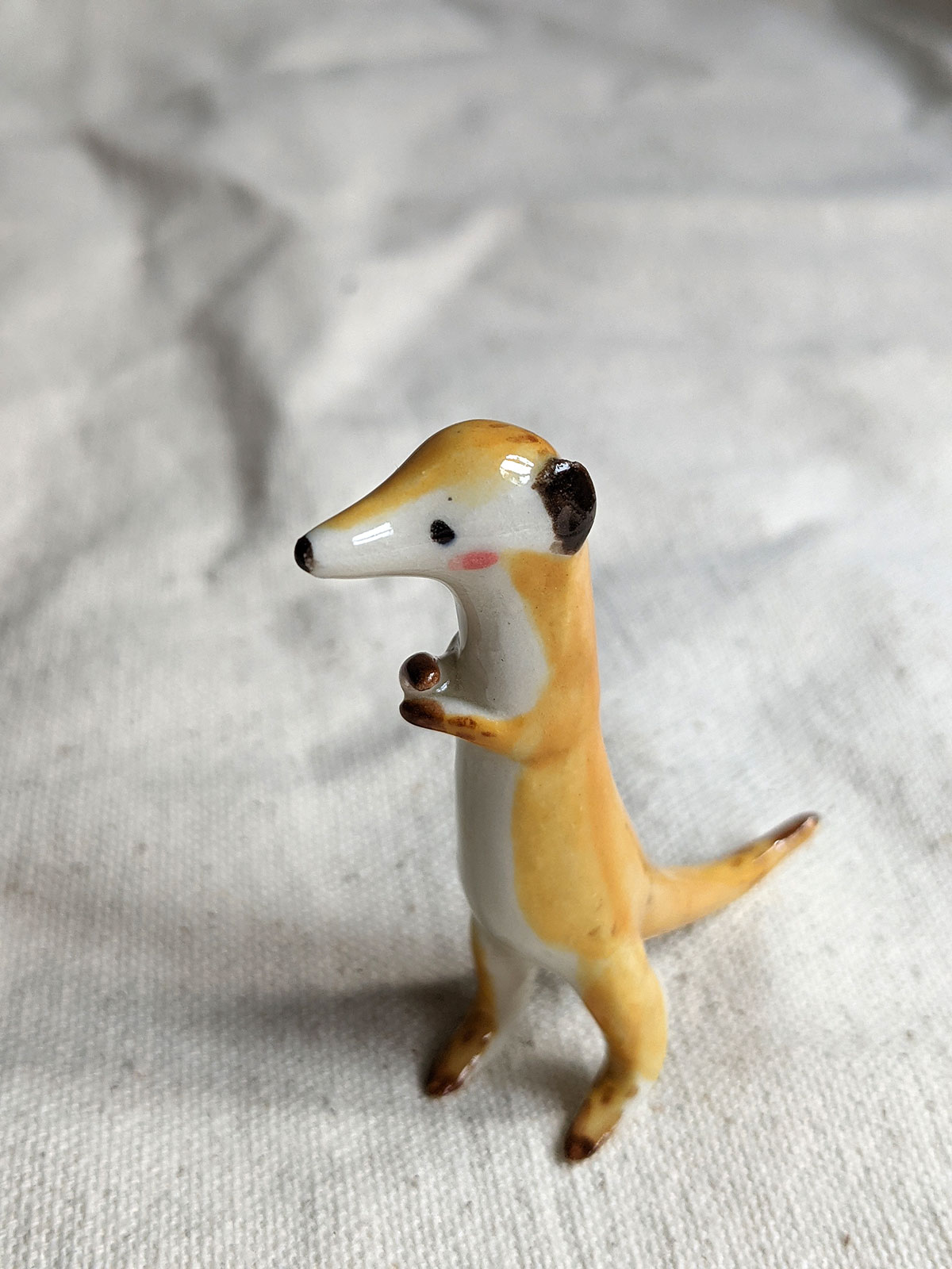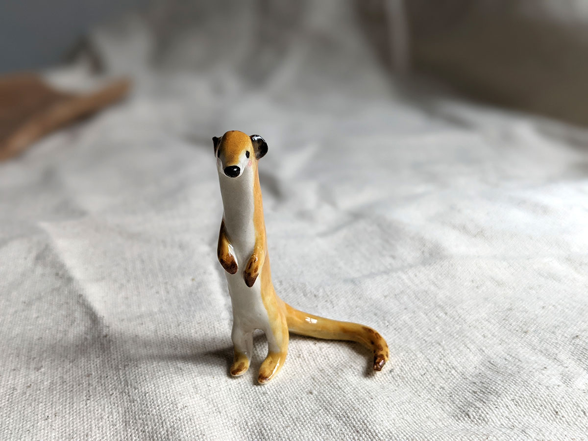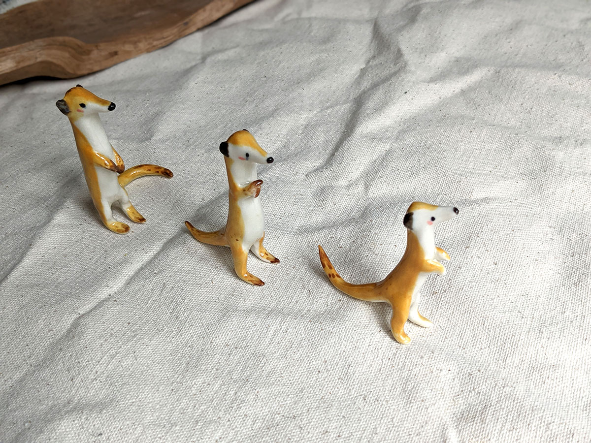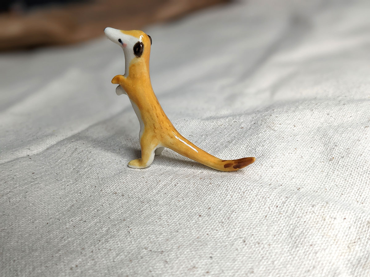 Little meerkat porcelain figurine in a sentinel pose. About 5/6 cm high, several models to chose from. One of a kind ceramics miniature, handcrafted in Montréal.