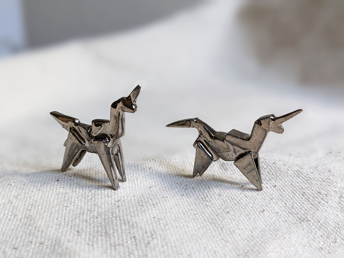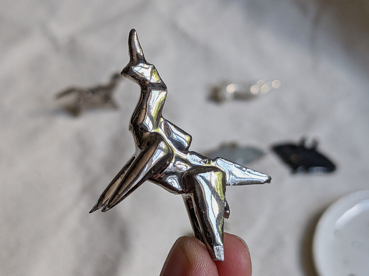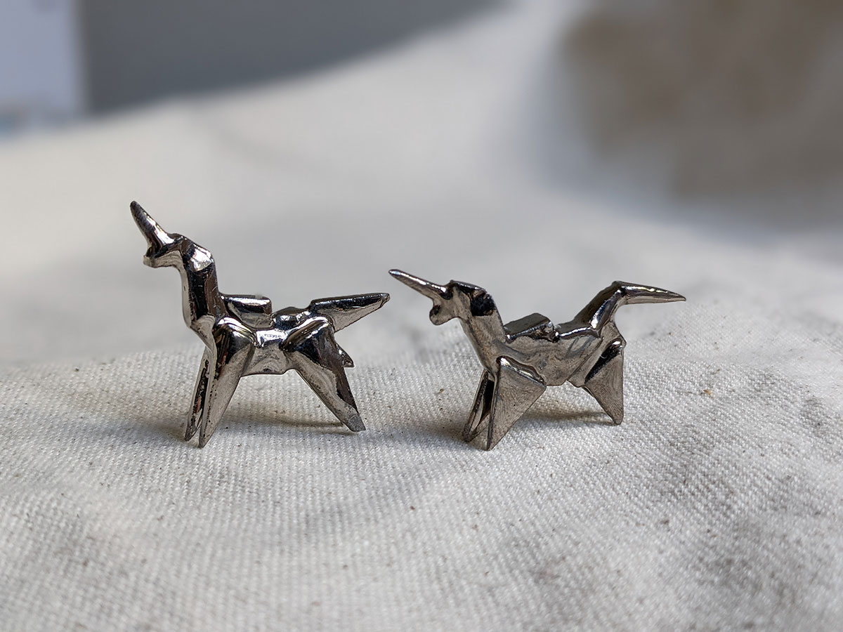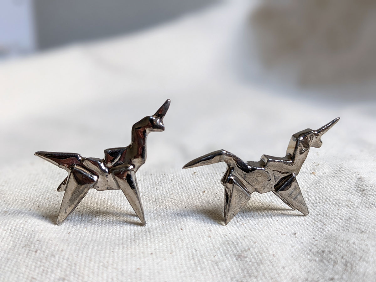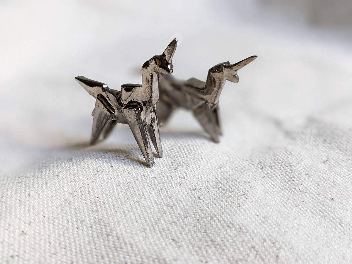 Tiny Origami Unicorn in White Gold. This one of a kind sculpture is reminiscent of the movie Blade Runner. This listing is for the tallest one of the two only. About 4-5 cm long. One of a kind piece.