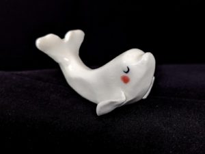 Ce petit pendentif a été modelé à la main à Montréal. Il est fait de porcelaine locale et il est envoyé dans une boîte illustrée avec un petit dessin fait sur le moment.