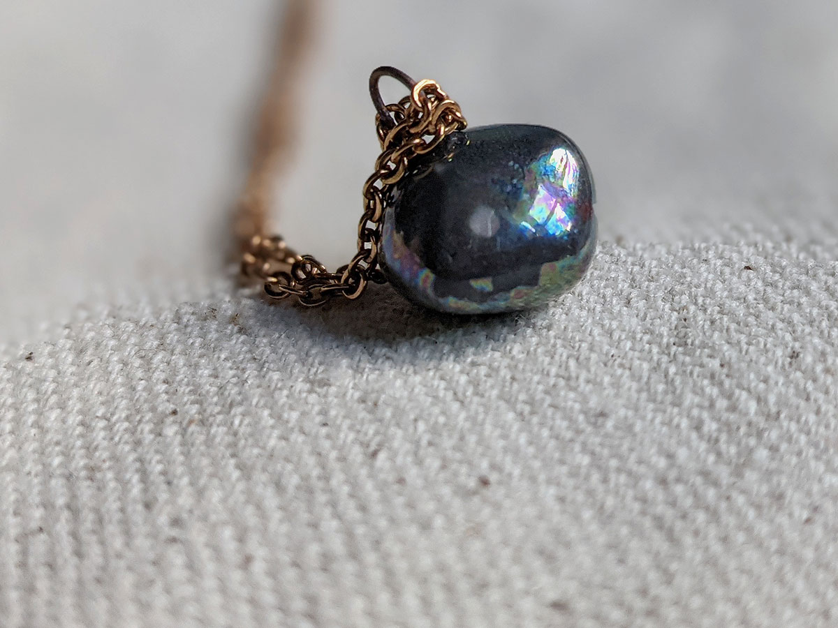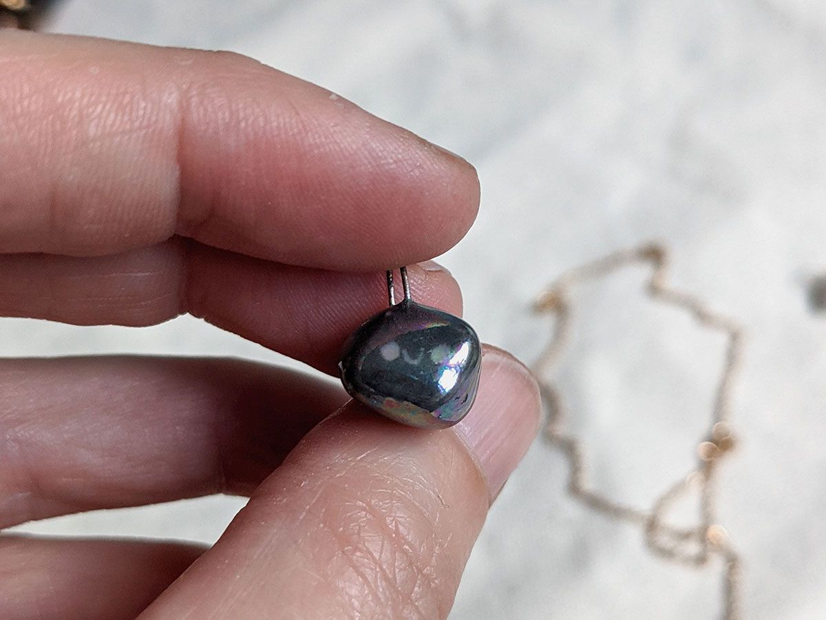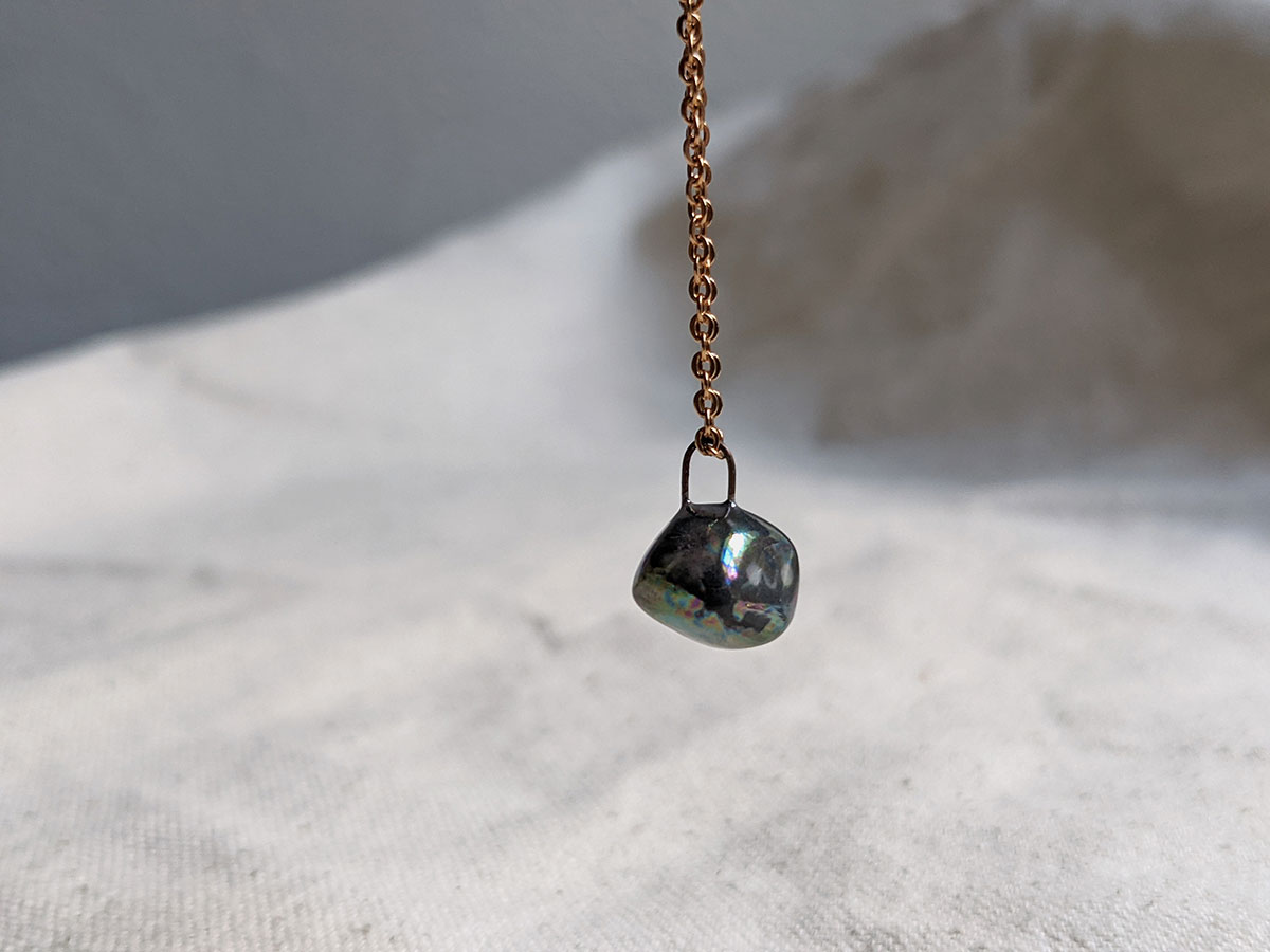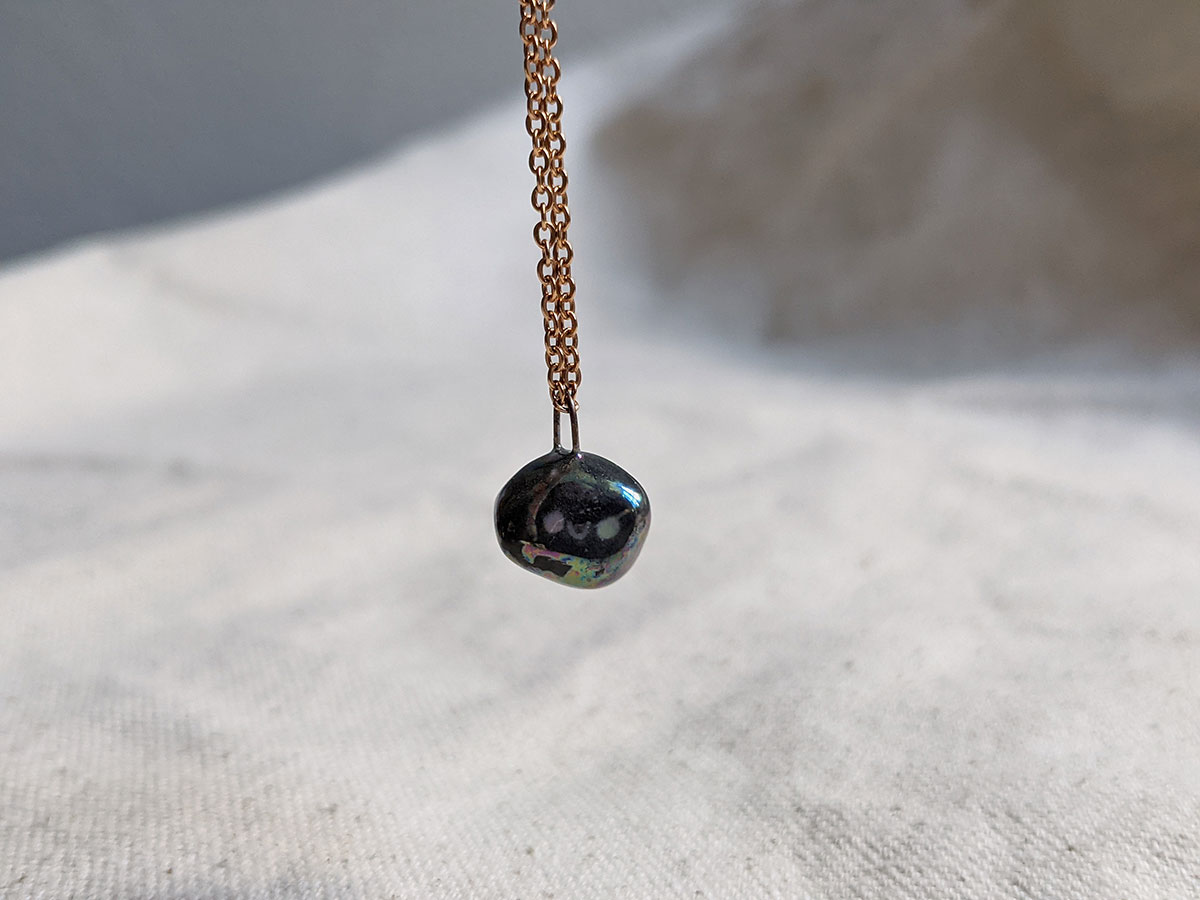 One tiny pet rock pendant, in porcelain and pearl. Always happy ^^