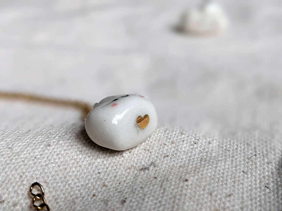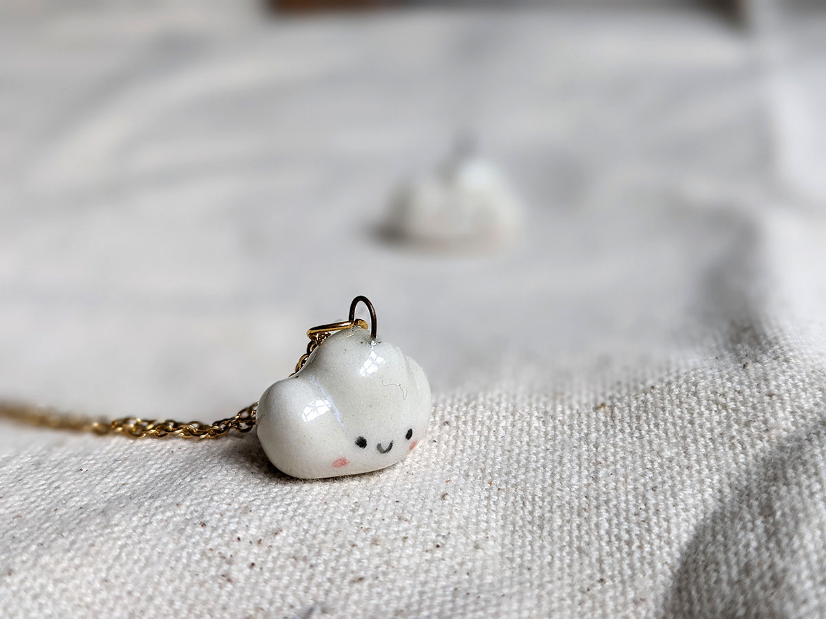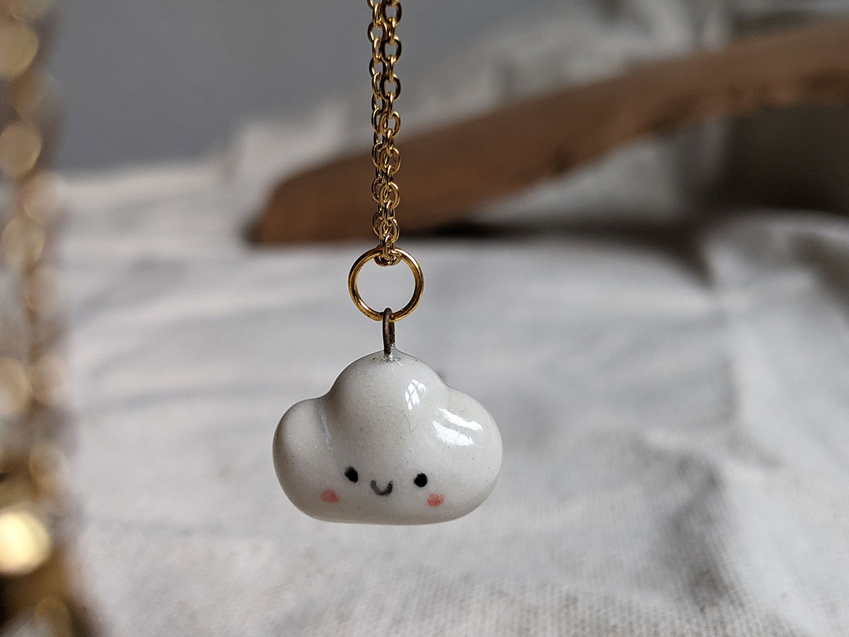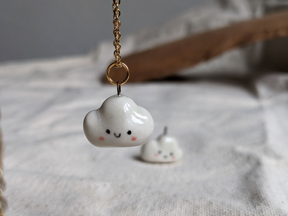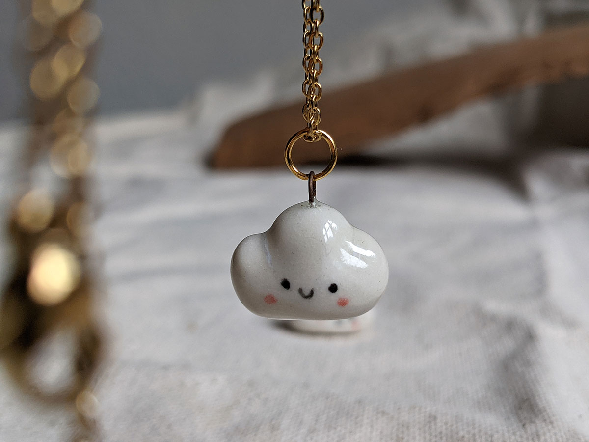 Cute little happy cloud, porcelain pendant with a small gold heart on the bottom. Chain sold separately.