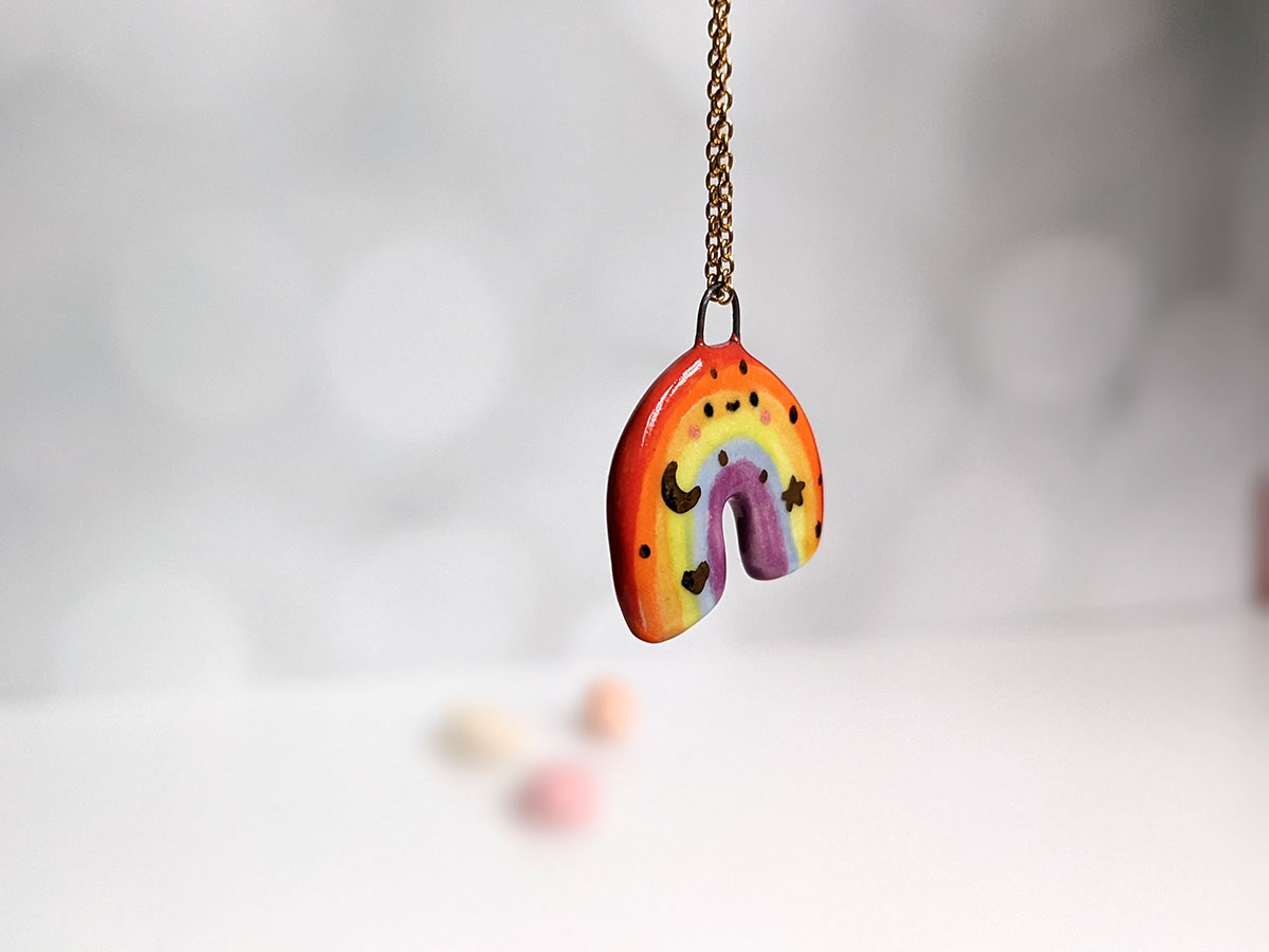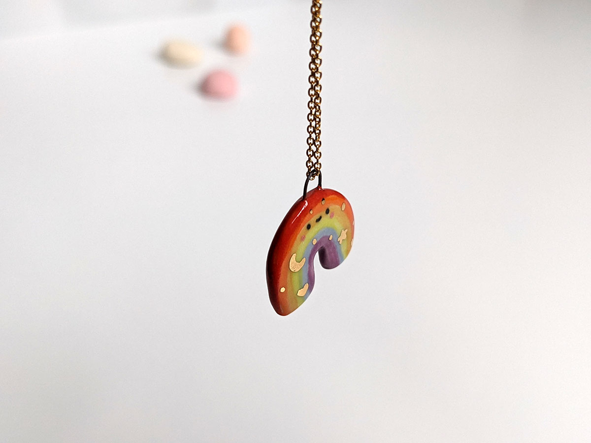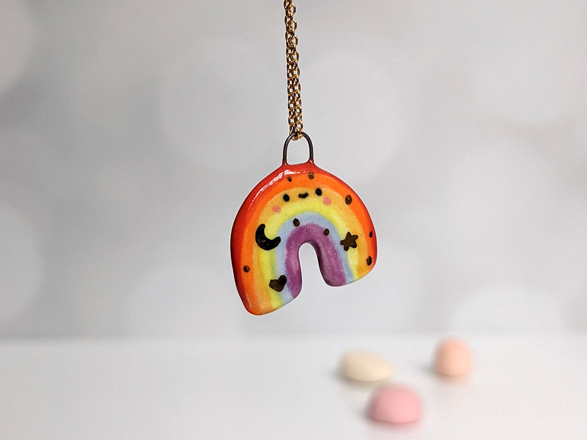 Rainbow porcelain pendant with gold details, chain sold separately.