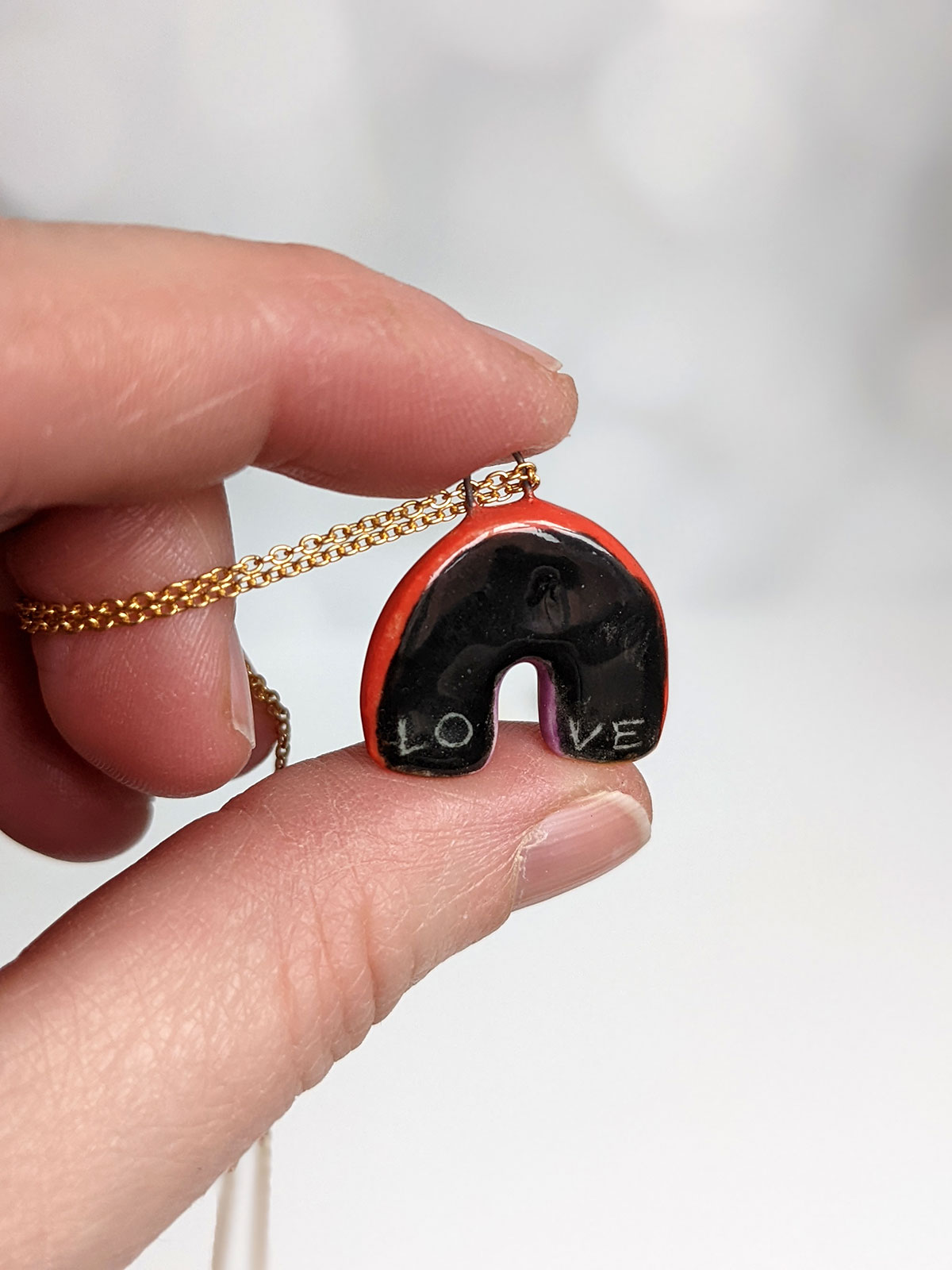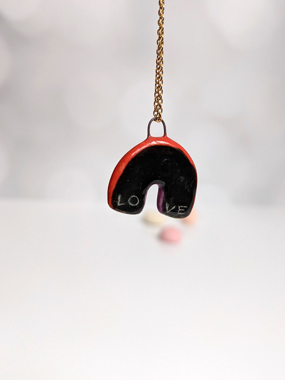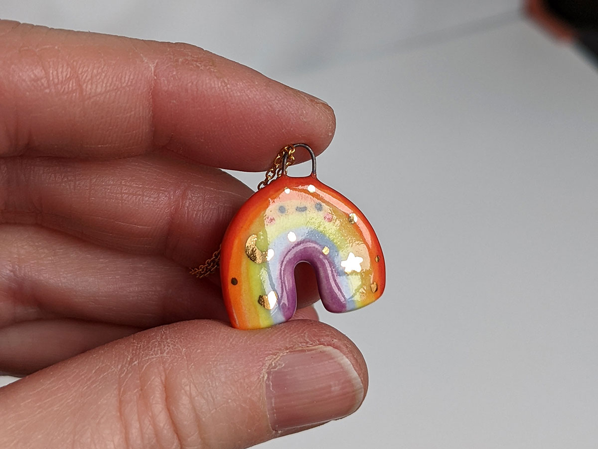 Rainbow porcelain pendant with gold details, chain sold separately.