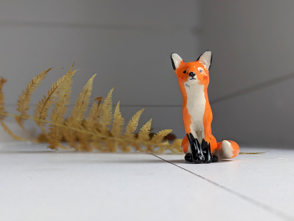 Figurine de Renard roux en porcelaine. Pièce unique.
