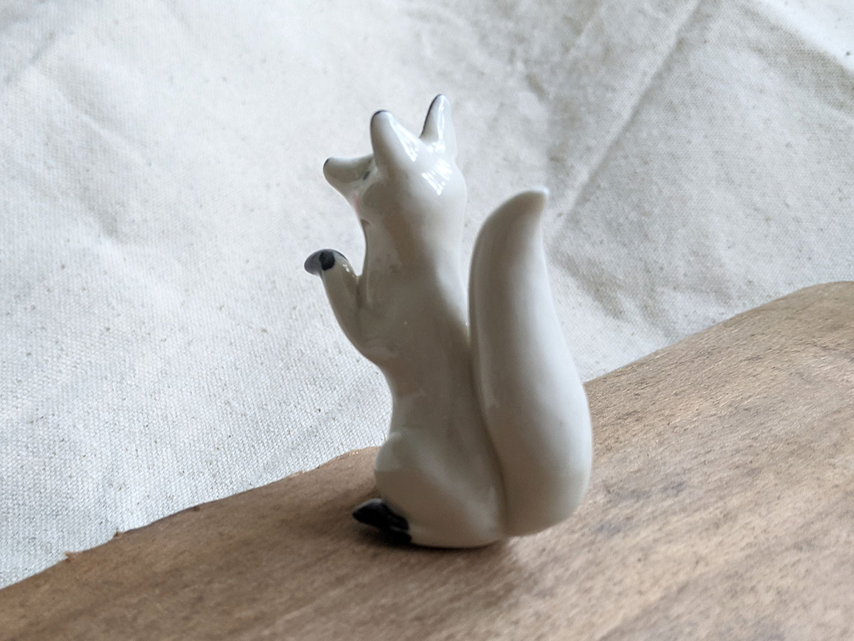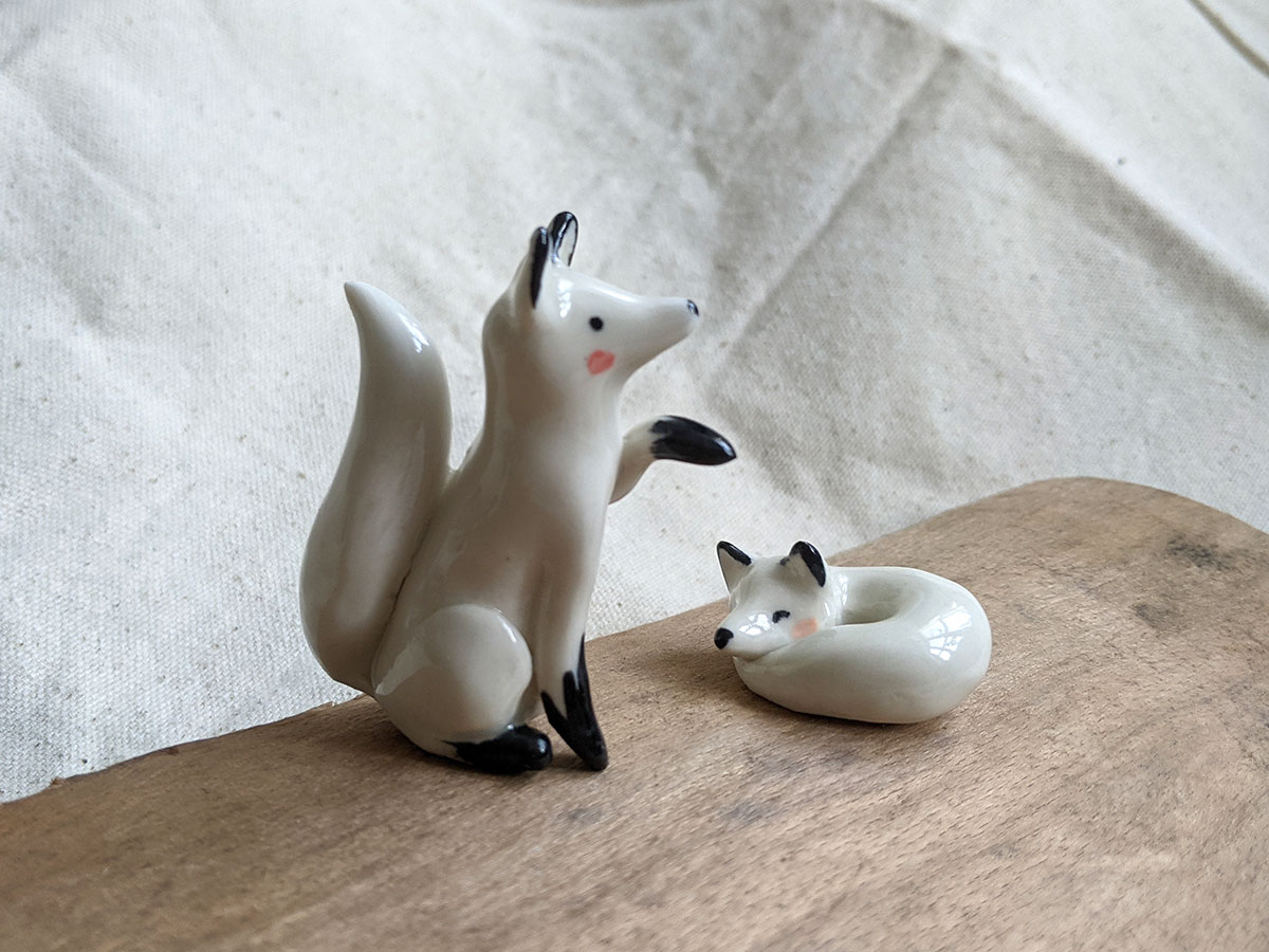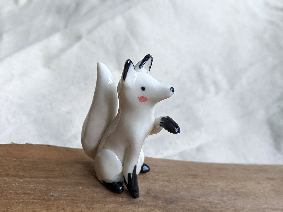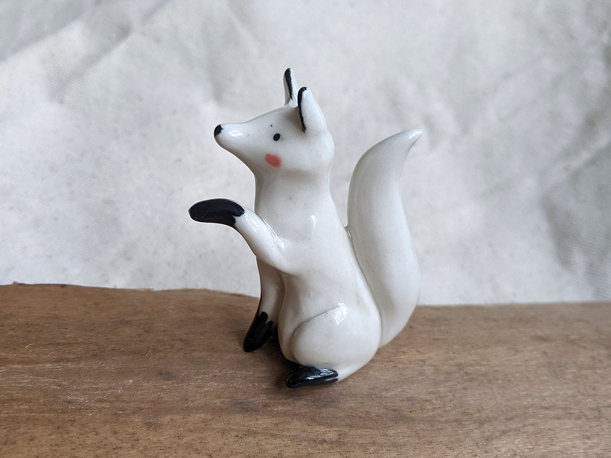 Sitting Arctic Fox, 7 cm high. Like all the ceramic animals it comes in a custom box.