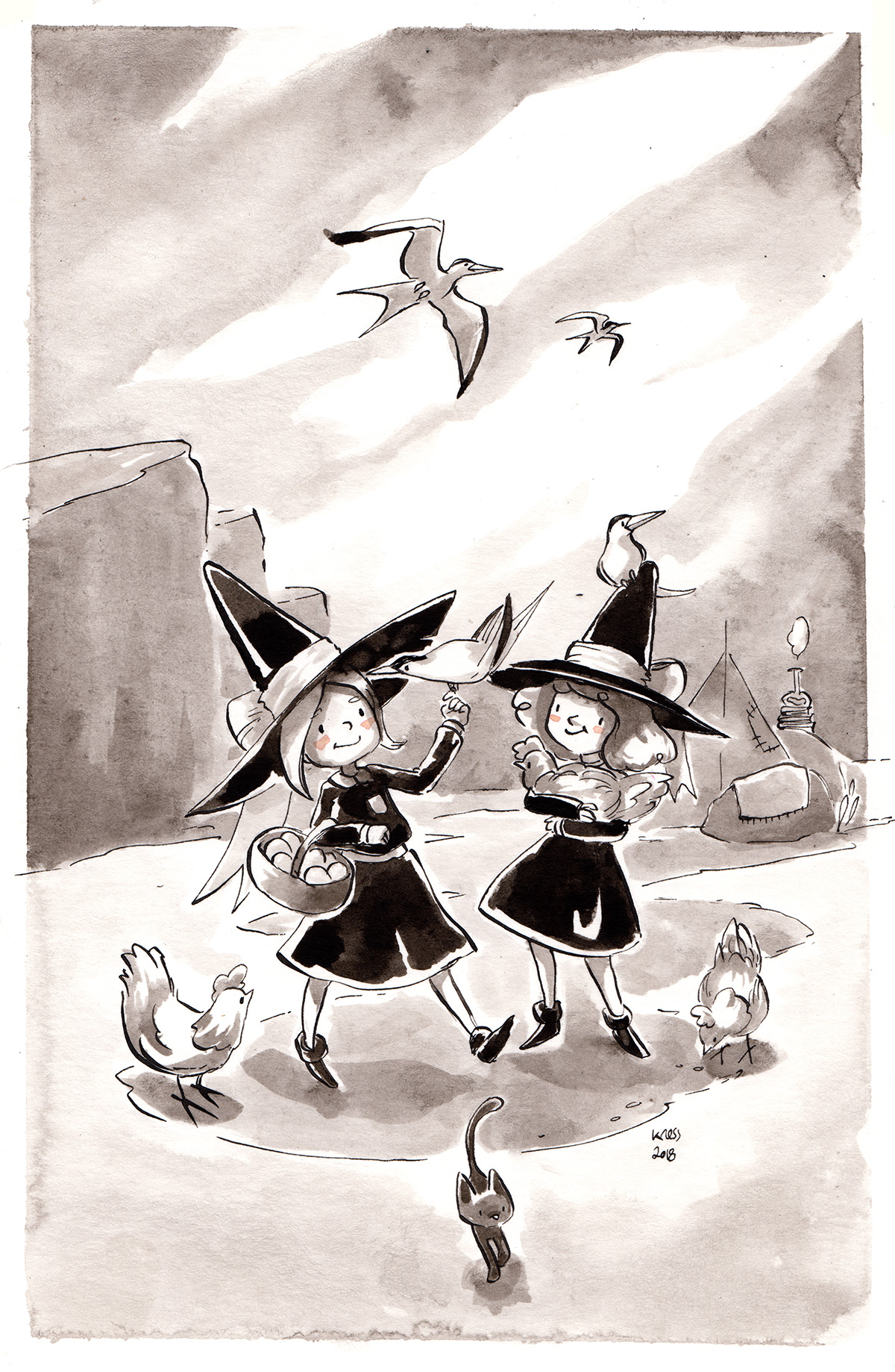 Original drawing from Inktober 2018 – Tern + Chicken – 5/31 .