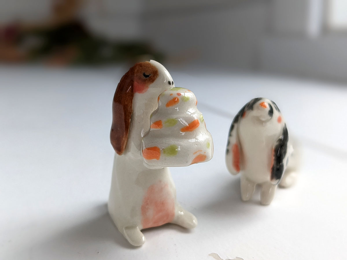 Two bunnies and cake