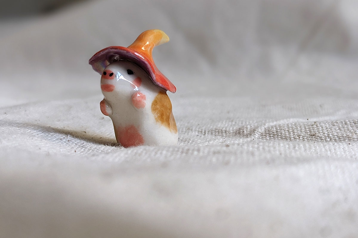 Porcelain witch Guinea Pig, one of a kind Dungeon and Bunnies figurine.