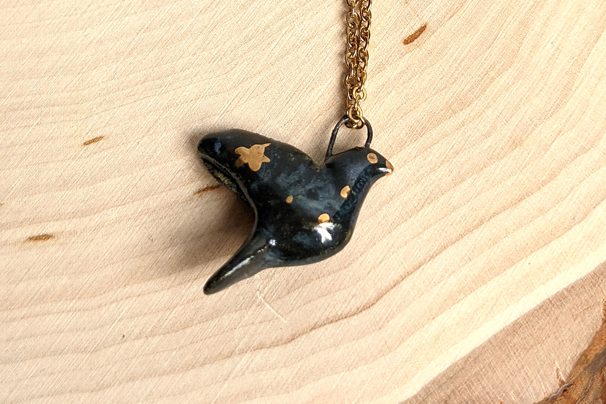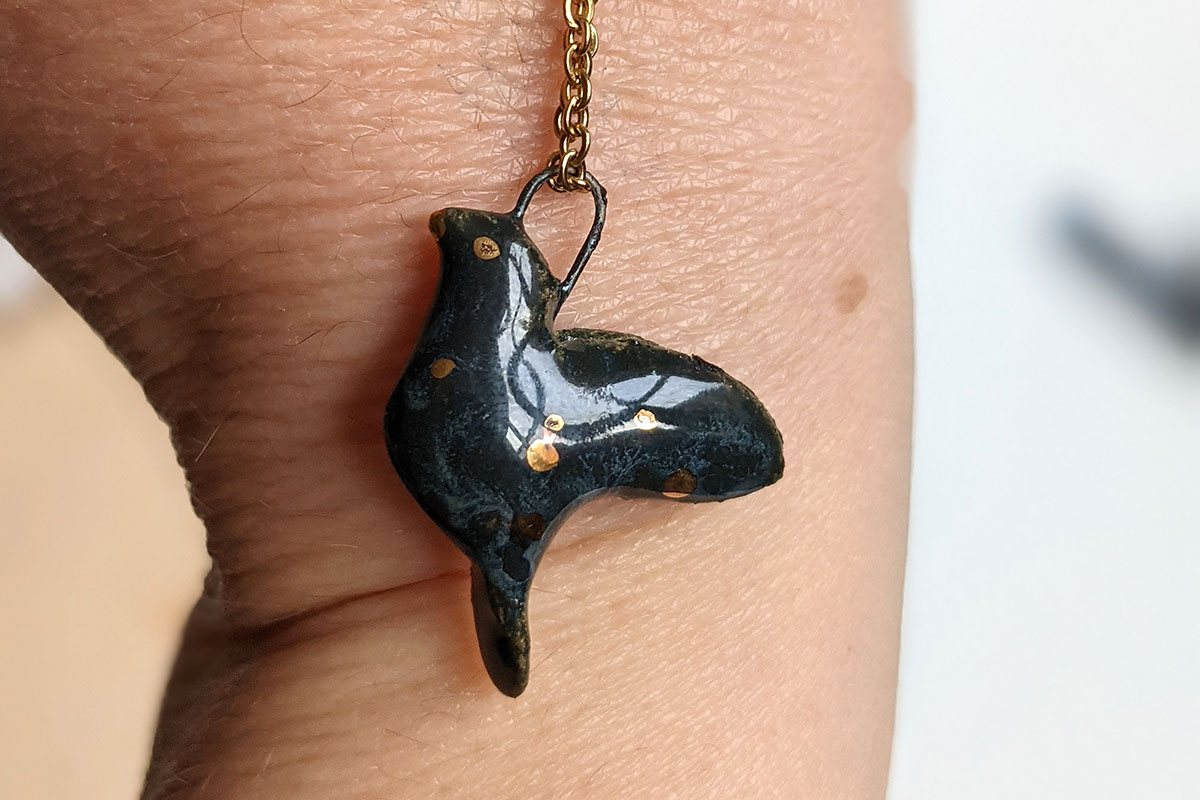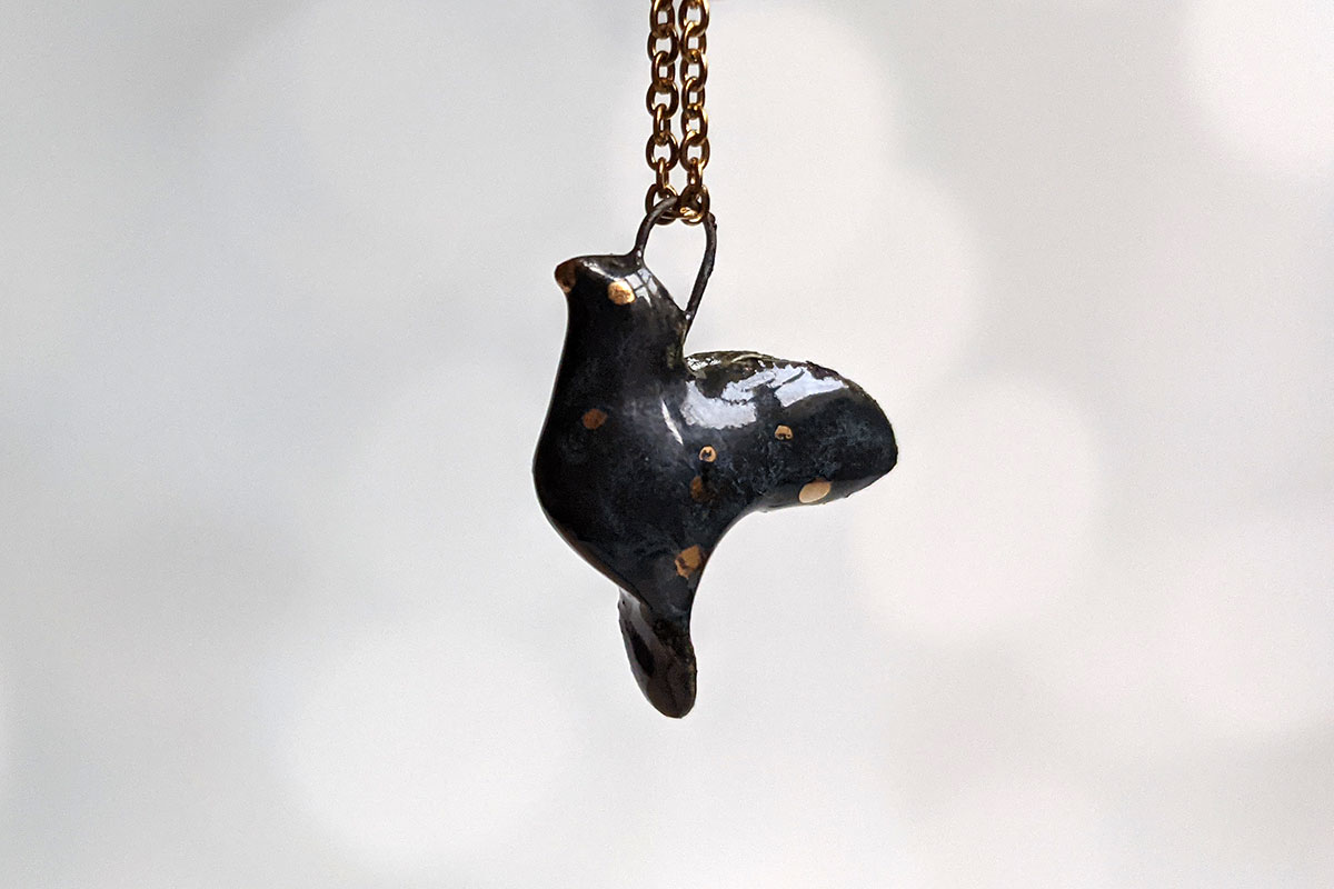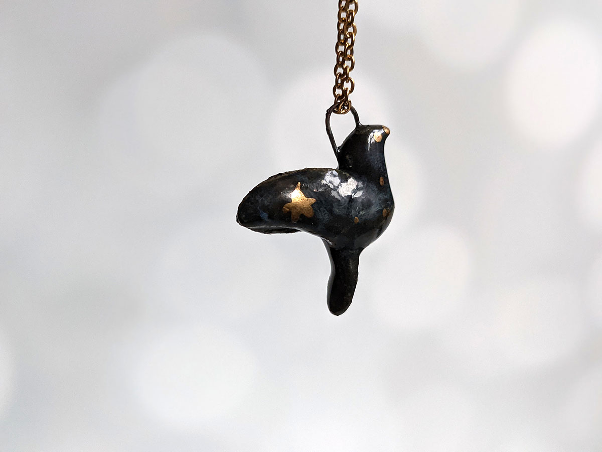 Zodiac sign porcelain pendant, with yellow gold highlights. About 2-3 cm long / wide, this piece is entirely handcrafted. Small fine gold details and stars are painted in. This one of a kind piece comes in an illustrated box.